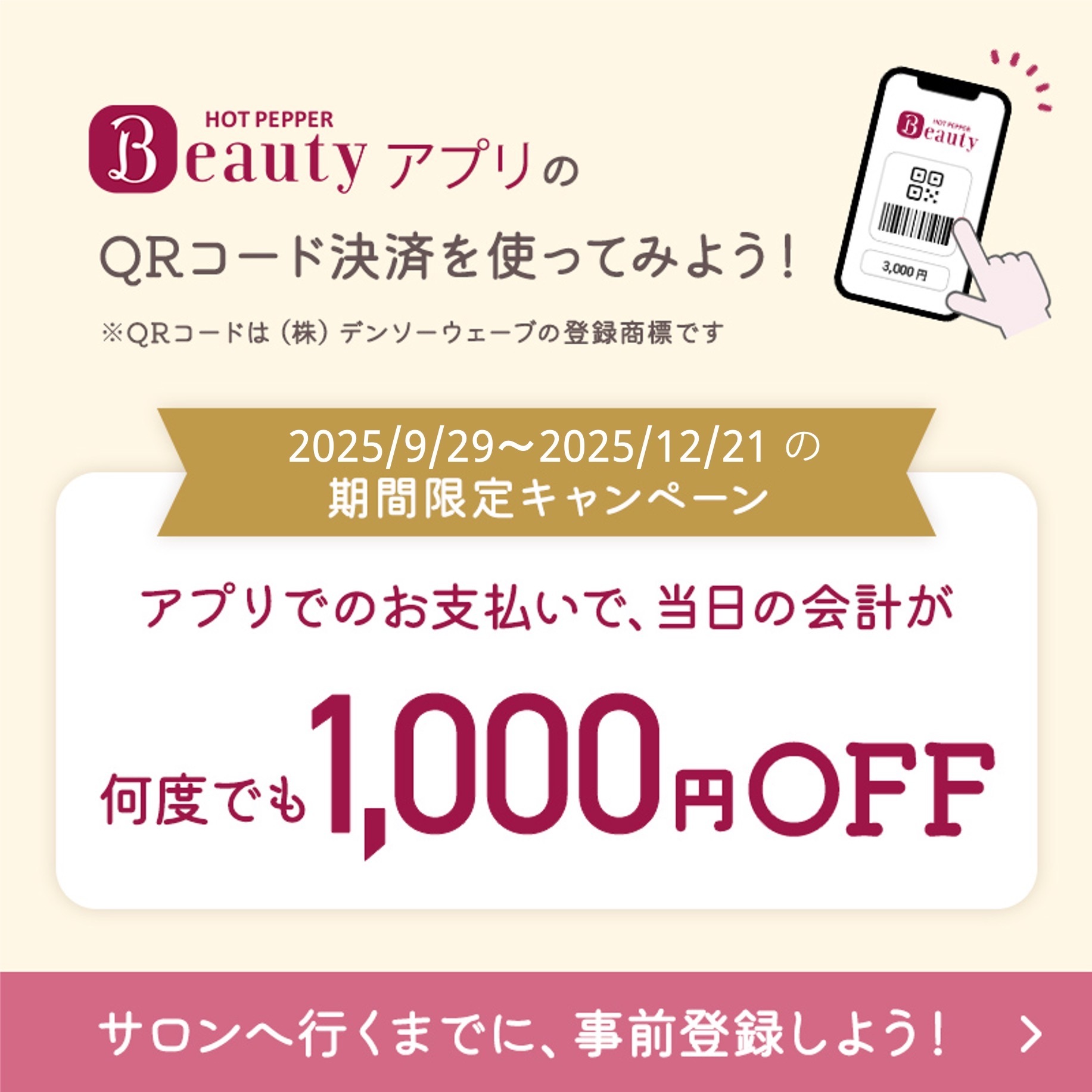 当日のお支払いを「ホットペッパーアプリのQRコード決済」に